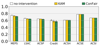 翻译:机器学习(Machine Learning,简称ML)模型被广泛应用于许多现代数据系统中。虽然它们是无可否认的强大工具,但是机器学习模型常常表现出不平衡的性能和不公平的行为。这个问题的根源通常在于不同的子人群通常展现出不同的趋势:当一个学习算法试图识别数据中的趋势时,它自然倾向于优先考虑大多数人群的趋势,导致一个性能差劲、对少数族群公平性欠缺的模型。我们的目标是通过仅应用非侵入式的干预来改善机器学习模型的公平性和可靠性,即不改变数据或学习算法。我们使用一个简单但关键的见解:不同子人群之间和随后学习模型与少数群体之间的趋势分歧类似于数据漂移,这表明数据的某些部分与训练的模型之间的一致性较差。我们探讨了两种策略(模型分割和权重重调)来解决这种漂移,旨在提高模型整体对基础数据的一致性。两种方法都引入了一种新的数据分析原语——符合性约束,用于构建数据概要。我们在7个真实世界的数据集上进行了实验性评估,结果表明,DifFair和ConFair都可以提高机器学习模型的公平性。