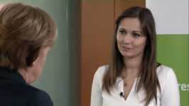 We introduce the Merkel Podcast Corpus, an audio-visual-text corpus in German collected from 16 years of (almost) weekly Internet podcasts of former German chancellor Angela Merkel. To the best of our knowledge, this is the first single speaker corpus in the German language consisting of audio, visual and text modalities of comparable size and temporal extent. We describe the methods used with which we have collected and edited the data which involves downloading the videos, transcripts and other metadata, forced alignment, performing active speaker recognition and face detection to finally curate the single speaker dataset consisting of utterances spoken by Angela Merkel. The proposed pipeline is general and can be used to curate other datasets of similar nature, such as talk show contents. Through various statistical analyses and applications of the dataset in talking face generation and TTS, we show the utility of the dataset. We argue that it is a valuable contribution to the research community, in particular, due to its realistic and challenging material at the boundary between prepared and spontaneous speech.