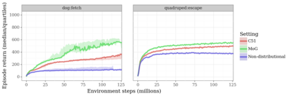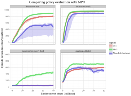 翻译:利用分配政策评价的Acor-critic 算法经常显示,在很多具有挑战性的控制任务方面,使用分布式政策评价的Act-critical 运算法往往优于其非分布式对应方,例如D4PG和DMPO的算法,分别与DPG和MPO相比(Barth-Maron等人,2018年;Hoffman等人,2020年)。但是,这两种代理商都依赖C51评论家来估计价值。C51方法的一个主要缺点是,它需要事先了解政策所能达到的最低和最高值,以及所使用的确定分配估计解决办法的垃圾箱数量。虽然Dep Mind 任务控制套件使用标准化的奖励和事件长度,从而使整个套件能够用这些超参数的单一设置来解决问题,但情况往往并非如此。本文回顾了一种自然的替代方法,取消了这一要求,即高司的混合物,以及一个简单的基于抽样的损失功能,以在离政策制度下培训它。我们从经验上评估它在一系列广泛的连续控制任务上的表现,并表明它需要高机构在高机构执行这些任务时,最终消除这些业绩。