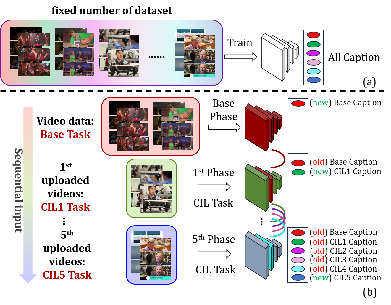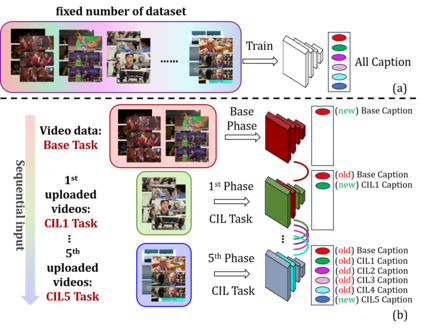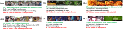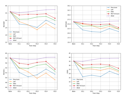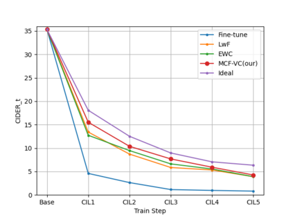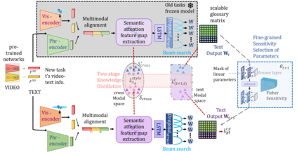 To address the problem of catastrophic forgetting due to the invisibility of old categories in sequential input, existing work based on relatively simple categorization tasks has made some progress. In contrast, video captioning is a more complex task in multimodal scenario, which has not been explored in the field of incremental learning. After identifying this stability-plasticity problem when analyzing video with sequential input, we originally propose a method to Mitigate Catastrophic Forgetting in class-incremental learning for multimodal Video Captioning (MCF-VC). As for effectively maintaining good performance on old tasks at the macro level, we design Fine-grained Sensitivity Selection (FgSS) based on the Mask of Linear's Parameters and Fisher Sensitivity to pick useful knowledge from old tasks. Further, in order to better constrain the knowledge characteristics of old and new tasks at the specific feature level, we have created the Two-stage Knowledge Distillation (TsKD), which is able to learn the new task well while weighing the old task. Specifically, we design two distillation losses, which constrain the cross modal semantic information of semantic attention feature map and the textual information of the final outputs respectively, so that the inter-model and intra-model stylized knowledge of the old class is retained while learning the new class. In order to illustrate the ability of our model to resist forgetting, we designed a metric CIDER_t to detect the stage forgetting rate. Our experiments on the public dataset MSR-VTT show that the proposed method significantly resists the forgetting of previous tasks without replaying old samples, and performs well on the new task.