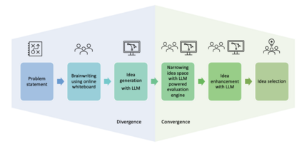 The growing availability of generative AI technologies such as large language models (LLMs) has significant implications for creative work. This paper explores twofold aspects of integrating LLMs into the creative process - the divergence stage of idea generation, and the convergence stage of evaluation and selection of ideas. We devised a collaborative group-AI Brainwriting ideation framework, which incorporated an LLM as an enhancement into the group ideation process, and evaluated the idea generation process and the resulted solution space. To assess the potential of using LLMs in the idea evaluation process, we design an evaluation engine and compared it to idea ratings assigned by three expert and six novice evaluators. Our findings suggest that integrating LLM in Brainwriting could enhance both the ideation process and its outcome. We also provide evidence that LLMs can support idea evaluation. We conclude by discussing implications for HCI education and practice.