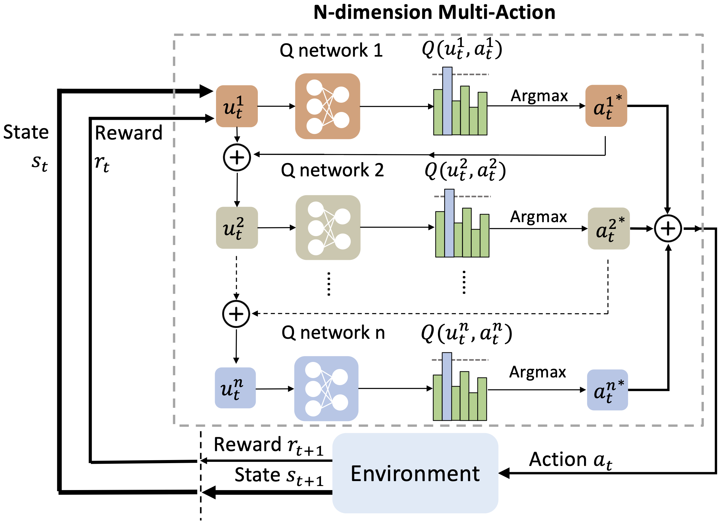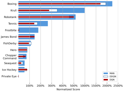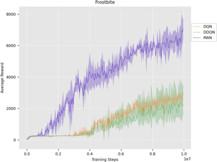 翻译:由于目前勘探效率低下,在强化学习领域,使用大型离散动作空间的学习控制政策是一个具有挑战性的难题。在高维行动空间中,每个单个层面都有大量潜在行动,可以学习政策。在这项工作中,我们引入了深强化学习(DRL)算法,称为多行动网络(MAN)学习,以应对高维大型离散动作空间的挑战。我们提议将Ndimenion动作空间纳入称为子动作的N1维部分,为每个子动作创建一个价值神经网络。然后,MAN利用时间差异学习同步地培训网络,这比直接培训一个具有大动作输出的单一网络简单得多。为了评估拟议的方法,我们测试MAN三种情景:N-dimenion Maze任务,一个块堆叠任务,然后将MAN扩大到18个动作空间的Atari Arcade学习环境的12场游戏。我们的结果显示,MAN学到的时间比深Qear和双深深基学习都要快,这意味着我们的方法比当前可以使用的时空空间更好地进行同步动作。</s>
