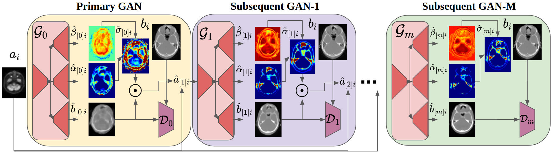 翻译:图像到图像翻译在应对各种医学成像任务(如减速校正、运动校正、低印的重建和去除等)方面发挥着至关重要的作用。生成式对抗性网络已证明在为这些任务制作高忠诚度图像方面达到了最先进的水平。然而,以GAN为基础的最先进的框架并没有估计对医学专家作出知情医疗决定和随后修订至关重要的网络预测的不确定性,而且最近还显示可以改进模型的性能和可解释性。在这项工作中,我们提出了一个为图像到图像翻译提供不确定性指导的渐进学习计划。通过将感官不确定性作为GANs逐渐培训的注意地图,我们逐渐产生越来越忠实的图像。我们展示了我们关于三项挑战性医学成像翻译任务的模型的功效,包括PET到CT翻译、不受欢迎的MRI重建以及MRI运动的Artefact校正。我们的模式在三种不同的任务中非常出色,并且改进了在全面监督/监督之下艺术状态的绩效。 MADR/SULDRDRI 和微软的GLMLDADRDRMLDRDRD)的有限数据规则。我们展示了模型的效能。