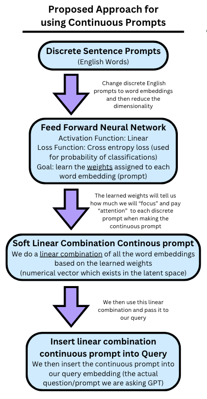The wayward quality of continuous prompts stresses the importance of their interpretability as unexpected and unpredictable behaviors appear following training, especially in the context of large language models automating people-sensitive tasks such as resume screening. In this paper we present a novel method of constructing continuous prompts via discrete prompt embeddings and evaluate improvements to continuous prompt interpretability and inference accuracy. For a set of manually designed discrete prompts $\mathcal{D}$, which we tokenize and embed each into tensor form, we train a model to predict the weights such that the linear combinations of those prompts correspond to higher performance on natural language understanding tasks.