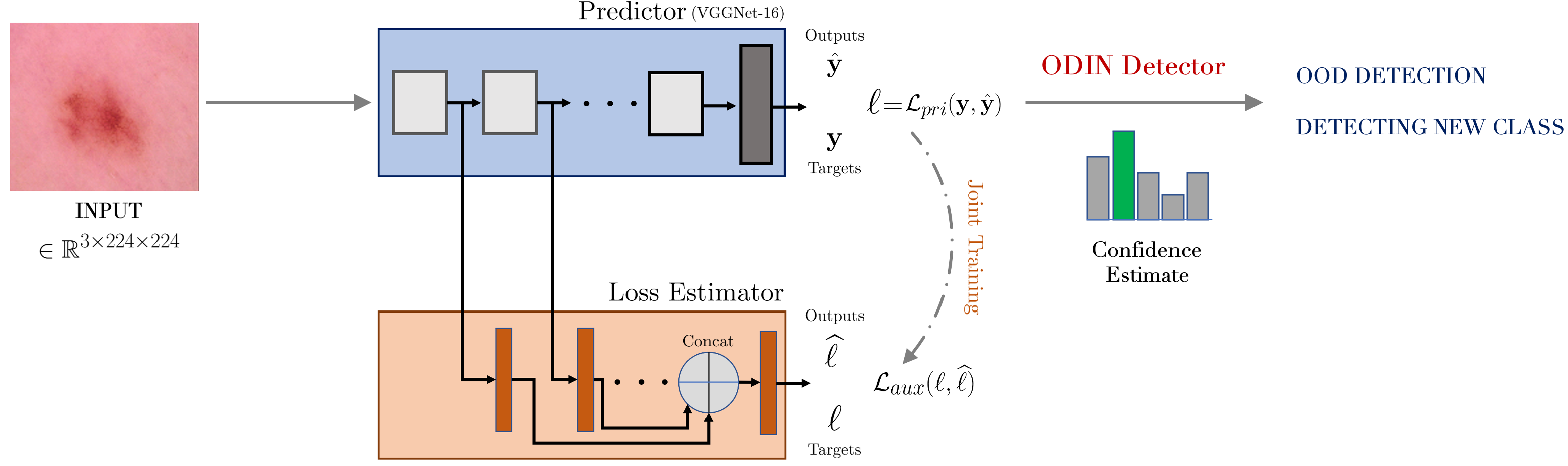 翻译:随着对采用AI方法进行临床诊断的兴趣增加,安全部署此类工具的一个重要步骤是确保模型不仅产生准确的预测,而且不向培训数据没有提供有意义的证据的数据系统概括,确保模型预测分布与真实分布相似的现有方法依赖于明确的不确定性估计器,而这些估计器本身很难校准。在本文中,我们提议使用对比培训目标,与预测模型一起培训损失估计器,直接估计预测不确定性。有趣的是,我们发现,除了产生经充分校准的不确定性外,这一方法还改善了预测器的普遍化行为。我们使用皮肤学使用案例,展示了损失估计器对于模型一般化的影响,既表现在分配数据上的忠诚性,也表现在培训过程中检测分发样品或新类别不为人知的能力。