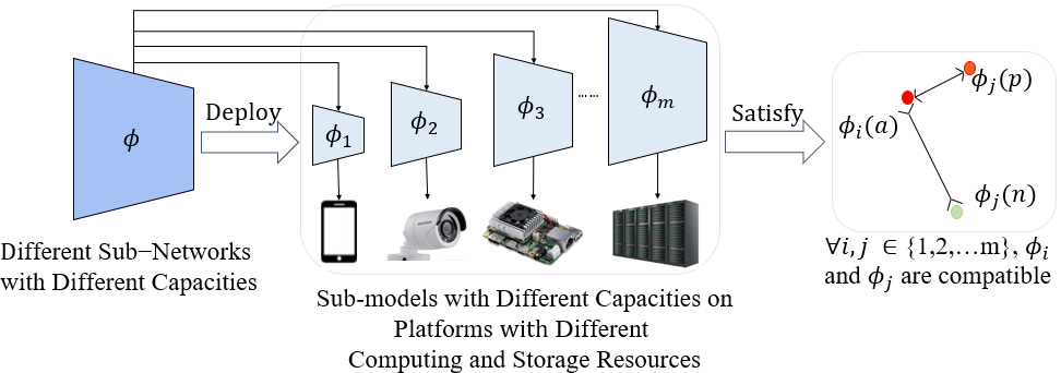 翻译:现实世界视觉搜索系统涉及在多个平台上部署具有不同计算和储存资源的不同平台。 部署适合最小封闭平台的统一模型导致的准确性有限。 预计它将部署能力不同、适应资源制约的模型,这需要这些模型的特征在计量空间中加以调整。 实现特征匹配的方法被称为“兼容学习 ” 。 现有研究主要侧重于一对一兼容模式,这在学习多个模型的兼容性方面是有限的。 我们提出了一个与自兼容性(SFSC)可转换的代表性学习框架。 SFSC通过一个培训进程生成了一系列不同能力兼容的子模型。 亚型模型的优化面临梯度冲突,我们从规模和方向的角度加以缓解。 我们通过不确定性估计来动态调整子型模型的优先事项,以便恰当地共同优化子型模型。 此外,预测方向相矛盾的梯度将避免相互干扰。 SFSC通过一个培训进程实现评估数据集的状态性能。
