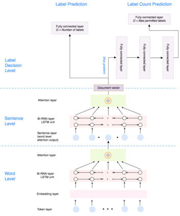 翻译:在多标签文本分类中,每个文本文档都可以指定一个或多个标签。由于这种性质,多标签文本分类任务通常被认为比二进制或多级文本分类问题更具挑战性。作为生物医学广泛应用的重要任务,例如分配诊断代码,近年来提出了若干不同的计算方法(例如,培训和结合每个标签的二进制分类方法)。然而,许多文件的准确性和效率都很低,实际使用的成功程度有限。我们提议ML-Net,这是一个新的深入学习框架,用于生物医学文本的多标签分类。作为一个端对端系统,ML-Net将标签预测网络与自动标签计数预测机制相结合,以产生一套最佳的标签,办法是利用每个标签的预测信任度和目标文件中的背景资料。我们用三种独立、公开可得的文本组合进行评价:生物医学文献和临床标签任务。评价,例如基于精度、回顾和F-计量的生物医学文本分类方法,在高端至端的服务器上,ML-Net-网络工作需要用一种竞争性的基线方法来进行对比。ML-Net-al-al-al-al-lax mal-lax mna lax lax lax a lax lax lax mal lax lax lax lax lax lax lax lax lax lax lax lax mal dal lax laxal lax laxal maxal madal laxal 。在高的计算方法中,要用一种可进行一项可比较。Mdal lax