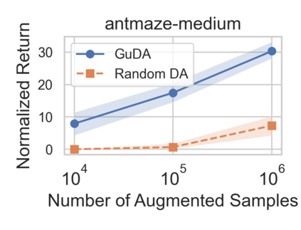 Learning from demonstration (LfD) is a popular technique that uses expert demonstrations to learn robot control policies. However, the difficulty in acquiring expert-quality demonstrations limits the applicability of LfD methods: real-world data collection is often costly, and the quality of the demonstrations depends greatly on the demonstrator's abilities and safety concerns. A number of works have leveraged data augmentation (DA) to inexpensively generate additional demonstration data, but most DA works generate augmented data in a random fashion and ultimately produce highly suboptimal data. In this work, we propose Guided Data Augmentation (GuDA), a human-guided DA framework that generates expert-quality augmented data. The key insight of GuDA is that while it may be difficult to demonstrate the sequence of actions required to produce expert data, a user can often easily identify when an augmented trajectory segment represents task progress. Thus, the user can impose a series of simple rules on the DA process to automatically generate augmented samples that approximate expert behavior. To extract a policy from GuDA, we use off-the-shelf offline reinforcement learning and behavior cloning algorithms. We evaluate GuDA on a physical robot soccer task as well as simulated D4RL navigation tasks, a simulated autonomous driving task, and a simulated soccer task. Empirically, we find that GuDA enables learning from a small set of potentially suboptimal demonstrations and substantially outperforms a DA strategy that samples augmented data randomly.