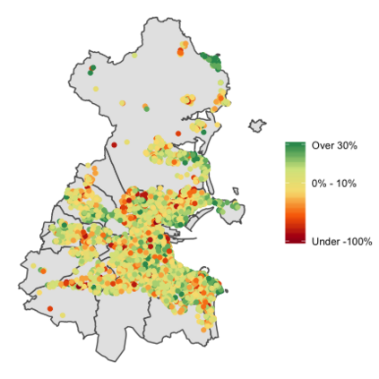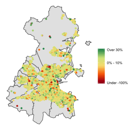 翻译:在各种环境下,如在为购买财产获得抵押贷款融资时,或在将住宅财产税定为财产转售价值的百分比时,对财产进行准确有效的估值至关重要。在国际上,基于转售的财产税最为常见,因为执行容易,而且很难建立场地价值。在爱尔兰,财产估值目前以最近出售的邻近财产的比较为基础,但这一方法受到低地产周转率的限制。基于地产价值而非场地价值的国家财产税,也阻碍了改进工作。由于随之而来的税收负担增加,因此也阻碍了改进工作。在本篇文章中,我们开发了空间性地产税回归模型,将地产特征的空间和非空间性贡献与转售价值的比例分开。我们通过地理相关性、多种财产类型和终点的借贷,减轻了低地产周转率问题。我们调查了对预测性业绩的错误标签影响,供应商错误地提供更富裕的后期代码,并评估改进工作对提高价值的贡献。我们灵活的地理空间模型超越了所有竞争者,在不同的评估性模型中应用了非地产价值,同时对地产价值做出了准确的预测,对地产价值进行了量化。