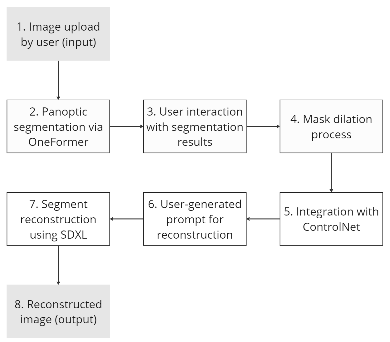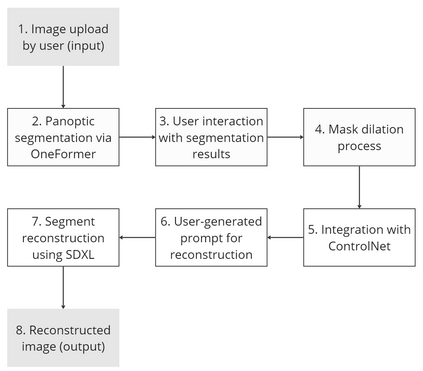 In contemporary design practices, the integration of computer vision and generative artificial intelligence (genAI) represents a transformative shift towards more interactive and inclusive processes. These technologies offer new dimensions of image analysis and generation, which are particularly relevant in the context of urban landscape reconstruction. This paper presents a novel workflow encapsulated within a prototype application, designed to leverage the synergies between advanced image segmentation and diffusion models for a comprehensive approach to urban design. Our methodology encompasses the OneFormer model for detailed image segmentation and the Stable Diffusion XL (SDXL) diffusion model, implemented through ControlNet, for generating images from textual descriptions. Validation results indicated a high degree of performance by the prototype application, showcasing significant accuracy in both object detection and text-to-image generation. This was evidenced by superior Intersection over Union (IoU) and CLIP scores across iterative evaluations for various categories of urban landscape features. Preliminary testing included utilising UrbanGenAI as an educational tool enhancing the learning experience in design pedagogy, and as a participatory instrument facilitating community-driven urban planning. Early results suggested that UrbanGenAI not only advances the technical frontiers of urban landscape reconstruction but also provides significant pedagogical and participatory planning benefits. The ongoing development of UrbanGenAI aims to further validate its effectiveness across broader contexts and integrate additional features such as real-time feedback mechanisms and 3D modelling capabilities. Keywords: generative AI; panoptic image segmentation; diffusion models; urban landscape design; design pedagogy; co-design