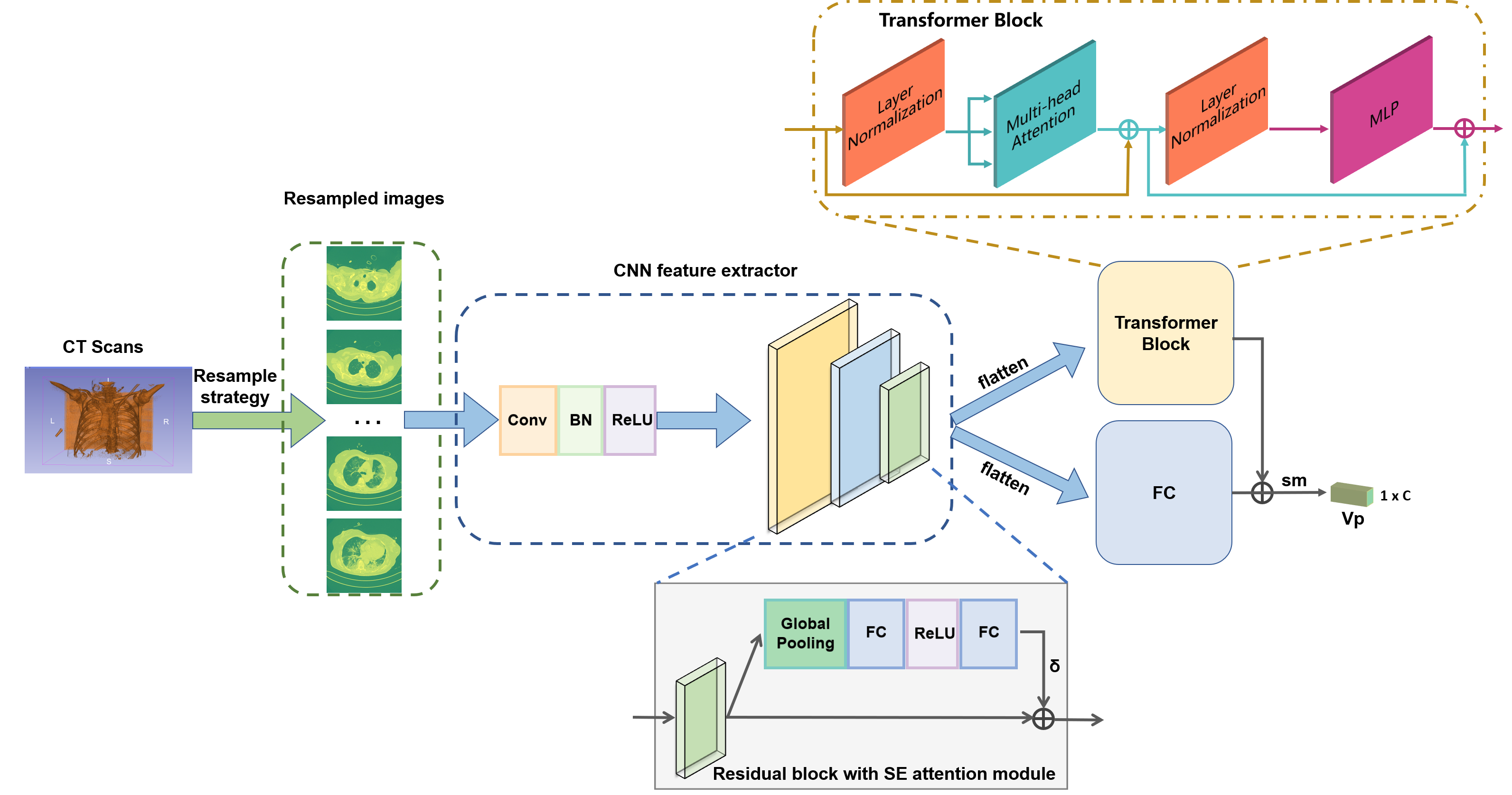 翻译:在本文中,我们提出了一个称为CTNet的混合深层次学习框架,将进化神经网络和变压器结合起来,通过3D胸部CT图像探测COVID-19,其中包括CNN特效提取器模块,SE注意从CT扫描中提取足够的特征,以及一个变压器模型,以模拟3DCT扫描的歧视性特征。与以前的工作相比,CTNet提供了一种有效和高效的方法,通过3DCT扫描和数据取样战略进行COVID-19诊断。在大型和公共基准方面,拟议的CTNet实现了COV19-CT-DB数据库的高级结果,超过了与数据集一起提出的最先进的基线方法。