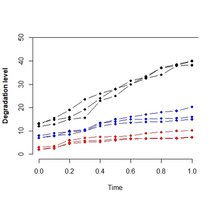 翻译:加速降解试验用于在相对较短的试验时间内准确估计高度可靠产品的寿命特性;通过一个具有实际意义的模型,对高压力(例如温度、电压或振动)特定试验中的数据进行外推,以获得正常使用条件下的终生四分位数的估计;在这项工作中,我们考虑用多种应力变量进行多次加速降解试验,假设降解路径采用线性混合效应模型,在反复采取措施时,这种模型在环境中非常常见;我们得出最佳的实验设计,以尽可能缩小无症状差异,在正常使用条件下估计正常使用条件下的中位故障时间,如果测量时间点是事先固定的,或者要优化。