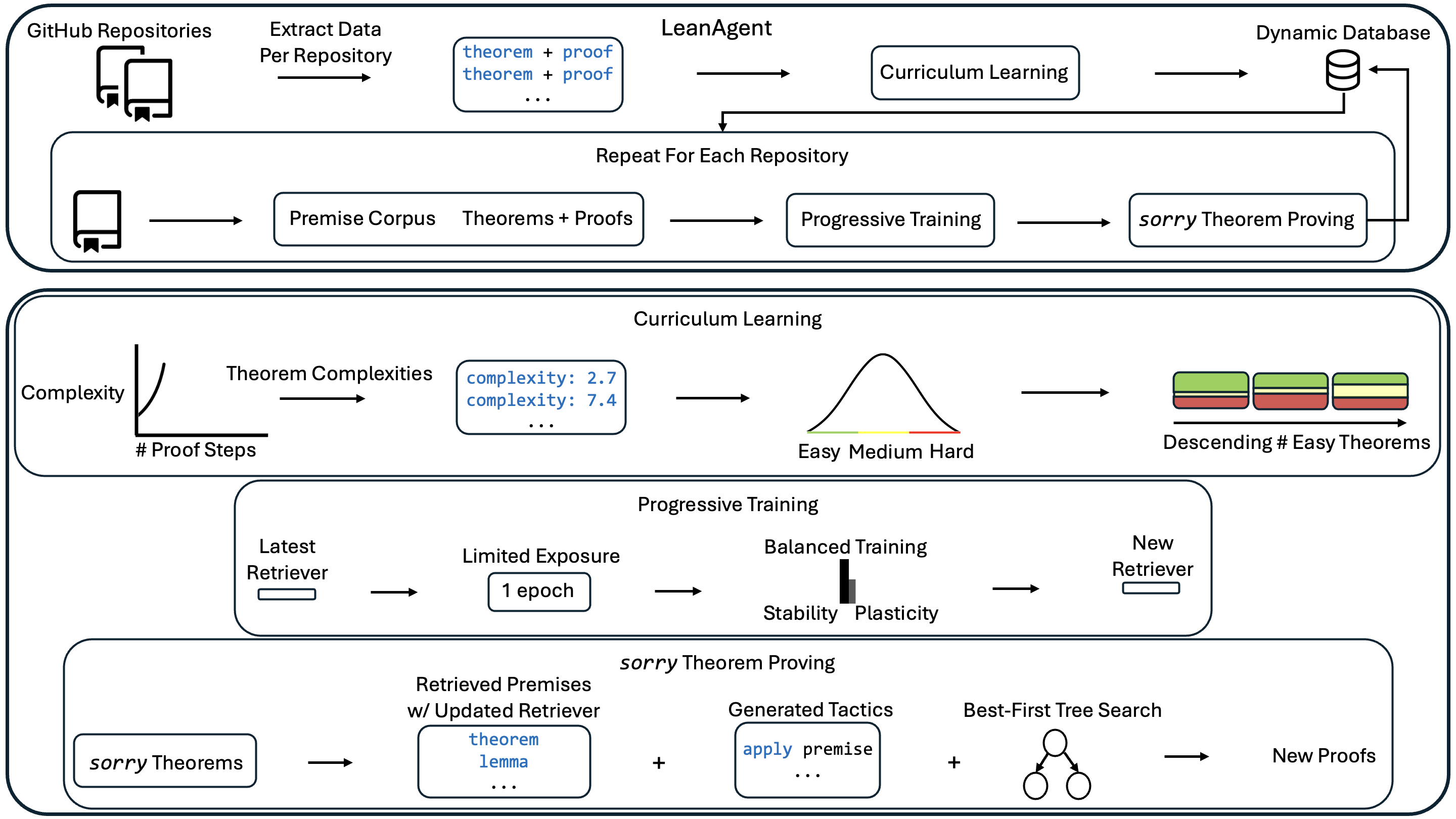 Large Language Models (LLMs) have been successful in mathematical reasoning tasks such as formal theorem proving when integrated with interactive proof assistants like Lean. Existing approaches involve training or fine-tuning an LLM on a specific dataset to perform well on particular domains, such as undergraduate-level mathematics. These methods struggle with generalizability to advanced mathematics. A fundamental limitation is that these approaches operate on static domains, failing to capture how mathematicians often work across multiple domains and projects simultaneously or cyclically. We present LeanAgent, a novel lifelong learning framework for theorem proving that continuously generalizes to and improves on ever-expanding mathematical knowledge without forgetting previously learned knowledge. LeanAgent introduces several key innovations, including a curriculum learning strategy that optimizes the learning trajectory in terms of mathematical difficulty, a dynamic database for efficient management of evolving mathematical knowledge, and progressive training to balance stability and plasticity. LeanAgent successfully proves 162 theorems previously unproved by humans across 23 diverse Lean repositories, many from advanced mathematics. It performs significantly better than the static LLM baseline, proving challenging theorems in domains like abstract algebra and algebraic topology while showcasing a clear progression of learning from basic concepts to advanced topics. In addition, we analyze LeanAgent's superior performance on key lifelong learning metrics. LeanAgent achieves exceptional scores in stability and backward transfer, where learning new tasks improves performance on previously learned tasks. This emphasizes LeanAgent's continuous generalizability and improvement, explaining its superior theorem-proving performance.