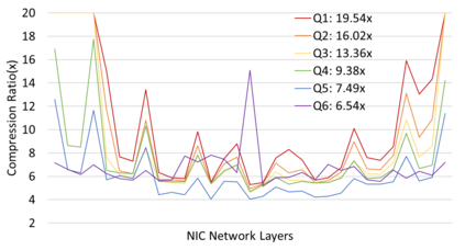 With neural networks growing deeper and feature maps growing larger, limited communication bandwidth with external memory (or DRAM) and power constraints become a bottleneck in implementing network inference on mobile and edge devices. In this paper, we propose an end-to-end differentiable bandwidth efficient neural inference method with the activation compressed by neural data compression method. Specifically, we propose a transform-quantization-entropy coding pipeline for activation compression with symmetric exponential Golomb coding and a data-dependent Gaussian entropy model for arithmetic coding. Optimized with existing model quantization methods, low-level task of image compression can achieve up to 19x bandwidth reduction with 6.21x energy saving.