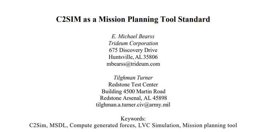 这些信息的一个可能用途是任务规划工具的通信机制。这些工具有助于缩小军事角色扮演者的作战知识与模拟系统主题专家的技术知识之间的差距。任务规划工具允许用户使用类似于 C2 系统的用户界面,在计算机生成的部队系统中轻松生成场景。这些系统大多依靠导出军事场景定义语言(MSDL)格式的文件,然后将其导入模拟系统。MSDL 标准已被 C2SIM 标准取代,系统可过渡到更新的标准。通过使用 C2SIM,规划工具还可以利用计算机生成部队系统的模拟能力来帮助用户规划方案。本文介绍了使用 C2SIM 信息与仿真系统通信的规划工具的开发过程,以及该标准带来的各种优势。