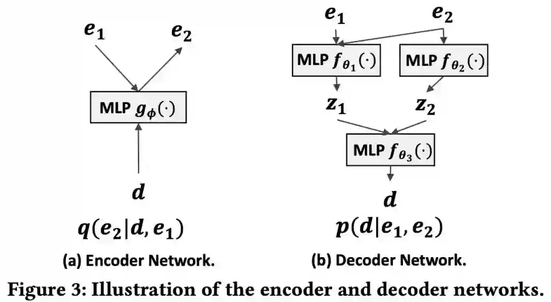 其中和diag分别表示从和估计的高斯分布的均值和方差。和diag则分别表示从估计的高斯分布的均值和方差。多项式分布的参数,代表用户的产品交互数量。则表示用对输出归一化的结果。 模型参数通过重构用户的历史交互进行优化。具体地,给定一个用户,和该用户的特征以及交互历史,想要最大化log-likelihood log: