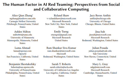(1) 红队的概念化:受罗伯特-索登及其同事[24]将 CSCW 立足于历史的论点启发,我们旨在了解红队作为一种社会技术合作实践的发展轨迹。这一主题邀请与会者深入讨论红队协作的复杂性,并思考在这一领域开展研究的影响[18]。什么是 “红队”?“红队”的概念是如何随着时间的推移而演变的?红队在更广泛的负责任人工智能框架中扮演什么角色,分散或外部方法如何促进其有效性?