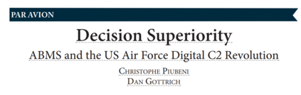 美国空军已经在ABMS项目上开发了数年,该项目将解决这些问题,使指挥官能够迅速接收来自多个来源的融合数据。五角大楼责成空军开发联合部队所需的能力,以便在传统的优势领域之外运作,努力在整个竞争中获得并保持决策优势。 2020年3月,为集中该部门的创新努力而成立的空军作战整合能力指挥官迈克尔-范蒂尼少将将决策优势描述为 "收集、解释和使用所需的信息,以阻止或赢得未来的冲突。" 他强调,成功将 默认属于"在所有领域中联系最紧密的一方:空中、陆地、海上、太空和网络空间。"