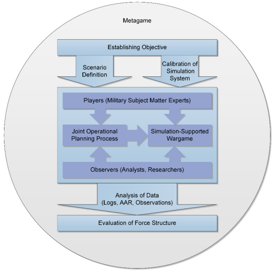 战术仿真是开发、测试和分析新的部队结构的一个重要工具。通过兵棋推演,可以深入了解一个部队结构对特定场景的适合程度,并揭示该结构的优势和劣势。然而,拥有一个好的执行计划对于成功地进行兵棋推演实验和从活动中获得有用的数据是至关重要的。在本节中,我们将介绍我们的仿真支持的兵棋推演方法,该方法是通过我们在过去10年中对兵棋推演实验的规划、执行和分析的经验发展而来的。我们还将讨论兵棋推演的背景,以及规划和组织兵棋推演活动的过程,这可以被视为一种元游戏。