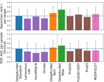 图2.使用DeepAccNet-Standard、-Bert和-MSA最终选择的模型质量