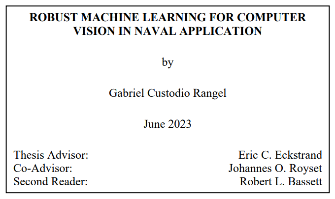 本论文提出开发一种弹性机器学习算法,可对海军图像进行分类,以便在广阔的沿海地区开展监视、搜索和探测行动。然而,现实世界的数据集可能会受到标签噪声的影响,标签噪声可能是通过随机的不准确性或蓄意的对抗性攻击引入的,这两种情况都会对机器学习模型的准确性产生负面影响。我们的创新方法采用 洛克菲勒风险最小化(RRM)来对抗标签噪声污染。与依赖广泛清理数据集的现有方法不同,我们的两步流程包括调整神经网络权重和操纵数据点标称概率,以有效隔离潜在的数据损坏。这项技术减少了对细致数据清理的依赖,从而提高了数据处理的效率和时间效益。为了验证所提模型的有效性和可靠性,我们在海军环境数据集上应用了多种参数配置的 RRM,并评估了其与传统方法相比的分类准确性。通过利用所提出的模型,我们旨在增强舰船探测模型的鲁棒性,为改进自动海上监视系统的新型可靠工具铺平道路。