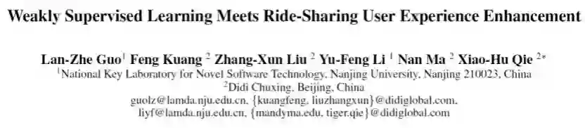 本文基于滴滴智能司乘评价的实际业务场景,展示复合弱监督学习的必要性和实际效用。具体而言,业务背景情况如下:随着移动互联网颠覆性变革,网约车不断发展普及,已进入人们日常生活。滴滴作为领先的一站式移动出行平台,深刻影响着人们的出行和生活方式。为尽可能地提升用户体验、建设良好的司乘生态,网约车智能司乘评价体系起着至关重要的作用,需兼顾乘客体验、司机接单公平性与平台效能。在智能评价体系中,每个乘客乘车结束后手机端都会收到一个推荐的评价问题,如“司机是否绕路?”。如果该回答能够很好的反映出此次行程的不足,那将有助于平台对司机进行教育,以提高用户的体验。借助机器学习来进行评价问题推荐就是智能评价体系的主要目标。然而,这其中存在两个严重影响机器学习性能的数据问题,一是数据存在严重的标记噪声,因为评价结果往往受到乘客主观因素的影响,导致收集到的标记不准确,同时也存在着大量误操作和乘客随意评价的情况;二是数据标记分布存在偏差,即训练数据中差评与好评数据的标记分布和真实线上环境的标记分布存在明显的差距。围绕这类实际数据问题,需要发展复合弱监督学习技术。本文提出的复合弱监督学习技术明显优于单纯弱监督学习技术,可将AUC性能提升5%以上。