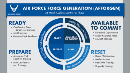 为了平衡这种紧张关系,AFFORGEN 为可部署单元设定了一个两年周期。分为四个为期六个月的阶段,单元从 "重置 "到训练,以保持部署准备状态,然后再返回重置。