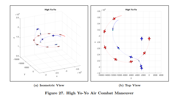 在可视范围内的空战涉及执行高度复杂和动态的活动,需要快速、连续的决策以生存和击败对手。战斗机飞行员花费数年时间来完善交战战术和机动动作,然而不断出现的无人自主飞行器技术引起了一个自然的问题--自主无人作战飞行器(AUCAV)能否被赋予必要的人工智能,以独立完成具有挑战性的空战机动任务?我们制定并解决了空战机动问题(ACMP),开发了一个马尔可夫决策过程(MDP)模型来控制一个寻求摧毁对手飞行器的AUCAV。该MDP模型包括一个5自由度、点质量的飞机状态转换模型,以准确表示机动时的运动学和能量。ACMP中状态空间的高维和连续性质使得经典的解决方法无法实施。相反,我们提出了一种近似动态规划(ADP)方法,其中我们开发并测试了一种近似的策略迭代算法,该算法实现了神经网络回归,以实现AUCAV的高质量机动策略。为了计算测试的目的,我们指定了一个有代表性的拦截场景,其中AUCAV的任务是保卫一个责任区,必须与试图穿透保卫空域的敌方飞机交战并摧毁它。进行了几个设计实验,以确定飞机特性和对手的机动战术如何影响拟议ADP解决方案的功效。此外,设计的实验使高效的算法超参数调整成为可能。ADP生成的策略与目前ACMP文献中发现的两个公认的基准机动策略进行了比较,一个只考虑位置,一个同时考虑位置和能量。在调查的18个问题实例中,ADP策略在18个实例中的15个超过了只考虑位置的基准策略,在18个实例中的9个超过了位置-能量基准策略,在最能代表典型空中拦截交战的问题实例中获得了更好的杀伤概率。作为一个有趣的探索,以及对我们方法的定性验证,由ADP策略产生的机动与标准的、基本的战斗机机动和常见的特技飞行机动进行了比较。结果表明,我们提出的ADP解决方法产生了模仿已知飞行动作策略。