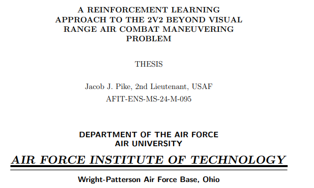 超视距(BVR)空战的起源可追溯至第二次世界大战后,其标志性事件是1946年美国海军研发的AIM-7“麻雀”导弹的问世。在冷战的紧张态势中,苏联轰炸机或战斗机可能配备新兴BVR导弹技术被视为对美国国家安全利益的重大威胁。尽管这一威胁从未真正实现,但随着冷战接近尾声,战斗机领域先进机动性与导弹技术的融合显著推动了BVR空战活动的发展。与受光照条件、目标尺寸、视觉敏锐度及目标方位等因素高度影响的视距内空对空(A2A)作战不同,现代BVR空战的机制主要围绕远程制导导弹的使用展开。在实际作战场景中,配备先进雷达系统的技术优势战斗机通过此类高精度远程导弹实现对敌机的压制。BVR空战的性质带来了独特挑战:由于缺乏成熟的战斗机战术与敌我识别(IFF)技术,飞行员常面临有效运用此类武器的局限性。为解决这些难题,基于强化学习(RL)的人工智能方法有望突破这些限制,提升美国空军(USAF)及其作战人员在BVR场景下的能力。