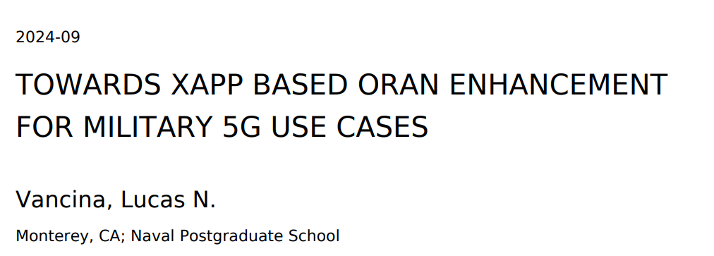目前的战术无线电网络设计并不适合低延迟数据共享,而低延迟数据共享是支持拟议战略(如联合全域指挥与控制、分布式海上作战和远征先遣基地作战)所必需的。第五代(5G)无线技术能够支持低延迟数据共享和大量用户同时使用不同作战功能的专用网络片段,允许根据不同任务集的需要聚合数据和用户并为其提供资源,因此更适合预计的未来军事信息环境。不过,在战场上使用 5G 之前,必须对其进行升级,使其在战术环境中安全可靠。这就需要采用灵活的方法来监控和修改蜂窝网络的行为。本论文围绕两篇有待发表的研究论文展开。第一篇是立场论文,介绍了支持核心决策授权的新型开放无线接入网(ORAN)5G 增强技术。第二篇是技术报告,介绍了扩展开源 ORAN 实现的详细开发指南,其中包含核心决策授权和其他高级安全解决方案所需的定制接口监控功能。