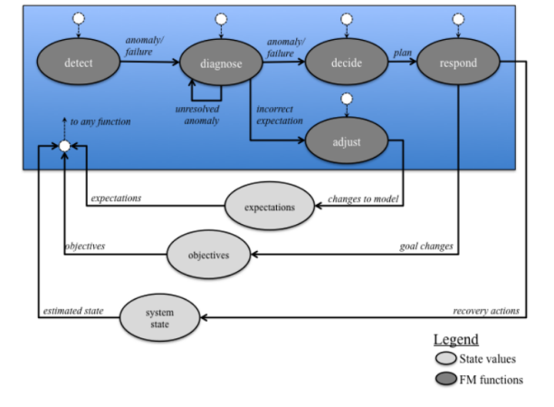 目前大多数包含某种程度的自动化FM系统都依赖于监测-反应范式中的基于规则的方法[12]。基于规则的方法的基本前提是直截了当的:对于每个规则,一个或多个条件被持续监测,如果所有条件都满足,则执行预定的响应。规则可以是简单的,也可以是复杂的,就条件的数量和它们的复杂性而言都是如此。同样,响应可以是简单的,也可以是由扩展的指令序列组成的。一个有效的响应也可能是在系统无法解决的非正常情况下提醒人类操作员。当故障条件和适当的响应是已知的,基于规则的系统提供了强大的自动化。然而,它们通常不适合处理未知的故障,除非包括推理部分,如形式专家系统[25]。