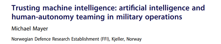 目前,从通信设备、传感器到防空系统,算法为一系列军事系统做出了贡献。在许多方面,现代军事力量已经依赖于某些形式的人工智能。然而,机器智能的未来应用将带来一种新的能力--一种非人类的协作伙伴,能够在战场环境不断变化的背景下做出积极主动的 "决策"。这种能力的内在优势只有在人类能够自如地依赖人工智能的情况下才能实现--人工智能不仅是一种工具,而且是团队中的一员。因此,本文将重点讨论人机协作(HAT)的一个具体方面:建立对机器智能的适当信任度。已有大量学术文献关注自动化或机器人技术在商业应用中的信任问题,但专门针对军事应用的学术研究却不多。本文将特别探讨利用人工智能的自主系统是如何在不同的军事环境中使用的,以及这些不同的环境是如何影响信任度的。
