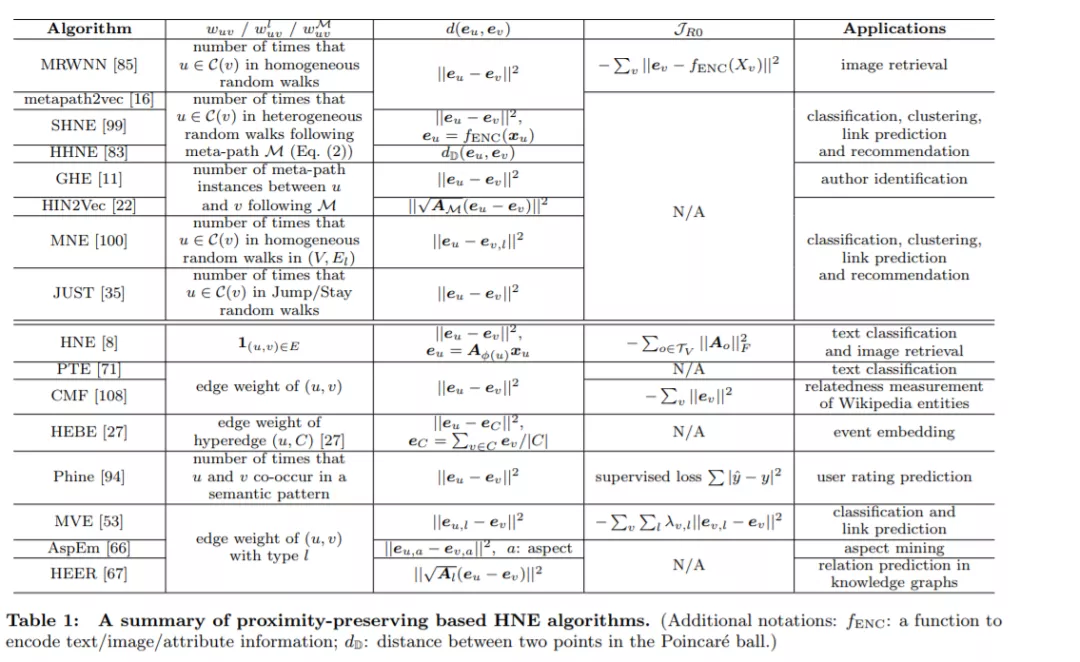 如前所述,网络嵌入的一个基本目标是捕获网络拓扑信息。这可以通过在节点之间保留不同类型的邻近性来实现。在HNE中,有两类主要的接近性保护方法:基于随机步法的方法(灵感来自DeepWalk[49])和基于一阶/二阶接近性的方法(灵感来自LINE[72])。