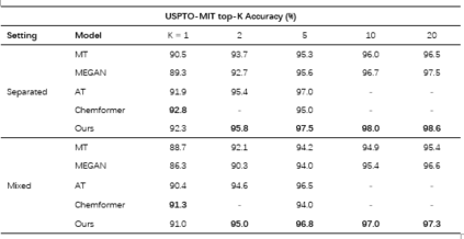 表3. 在USPTO-MIT数据集上R2P阶段的top-K正确率。