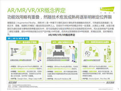**行业潜力:**增强现实(AR)技术可将虚拟信息数据叠加在现实世界之上,兼具交互性、沉浸感、实时性等特征,短期内AR可作为效率工具使用,填补产业空白;长期来看,具有成为下一代计算平台的潜力。 **驱动因素:**政策方面,“十三五”规划中首次提及虚拟现实,“十四五”中列为数字经济重点产业,由最初的仅聚焦于技术研发到鼓励多产业进行融合创新。投融资方面,海内外头部企业把握元宇宙设备层交互入口-AR终端设备,并持续布局下游应用内容生态。 **技术体系:**AR整机根据模块功能不同可拆解为计算、光学和传感三大功能单元。 “虚”软件技术:AR操作系统多基于安卓研发,支持硬件运行、内容展示和人机交互。 “实”硬件技术:主控芯片:AR功能复杂需专用芯片支撑,计算等功能云化方案较为远期。光学显示:包含全新光学系统技术,配合微显示屏幕组成光学模组,是AR终端设备最为核心部分。Birdbath+MicroOLED方案和自由曲面方案已率先落地并实现规模量产,阵列光波导和衍射光波导技术绝对参数较高更具未来,但制作工艺难度较大仍需长时间迭代。