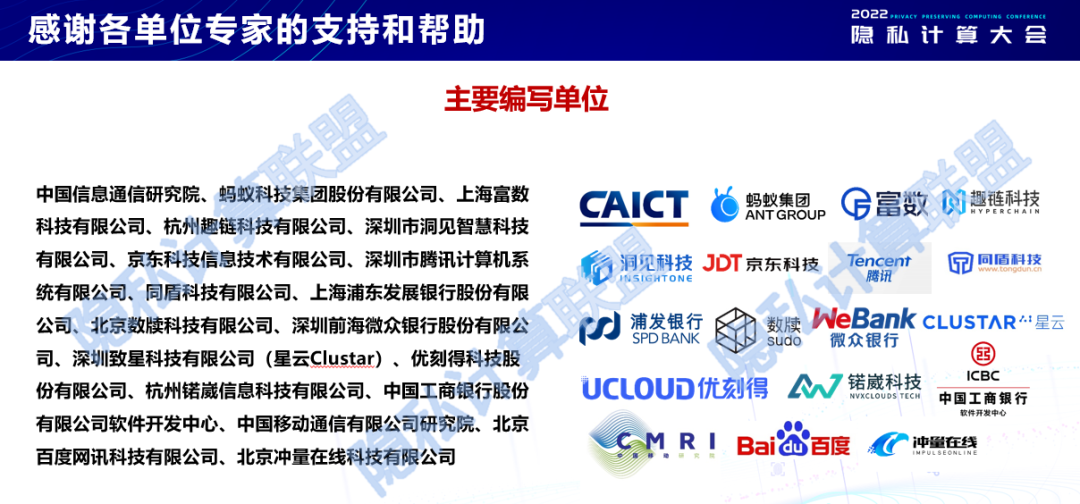 本报告的编写汇聚了多方力量,感谢各单位和各位专家的倾力支持。面对这个日新月异、快速发展的行业,我们期待与业界共同守正创新,推动隐私计算行业健康快速发展,让可信隐私计算在数据要素市场建设和数据流通过程中发挥更大的价值!