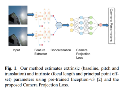 在包括三维重建、机器人交互的手眼协调、自动驾驶等各种任务中,摄像机标定是必不可少的。我们提出了一种利用图像对来预测外部(基线、间距和平移)、内部(焦距和主点偏移)参数的新方法。与现有的方法不同,我们没有设计端到端解决方案,而是提出了一种新的表示,将相机模型方程作为多任务学习框架中的神经网络。我们通过新的摄像机投影损失(CPL)来估计所需的参数,该方法利用摄像机模型神经网络重建三维点,并利用重建损失来估计摄像机参数。据我们所知,我们是第一种通过多任务学习方法联合估计内、外参数的方法,该方法结合了学习框架中的解析方程来估计摄像机参数。在此基础上,提出了一种基于CARLA Simulator[1]的CVGL摄像机标定数据集。在经验上,我们证明,我们提出的方法在使用合成和真实数据评估的10个参数中的8个上,与基于深度学习和传统方法相比,取得了更好的性能。我们的代码和生成的数据集可以在https://github.com/thanif/Camera-Calibrationthrough-Camera-Projection-Loss上找到。