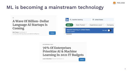 有很多很棒的课程来学习如何训练深度神经网络。但是,训练模型只是进行深度学习项目的一部分。本课程教授全栈生产深度学习: