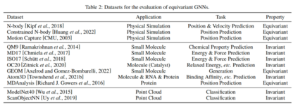 等变GNN在各种类型的现实世界几何数据中具有广泛的应用,从物理系统到化学物质。数据集资源概览如下图所示。