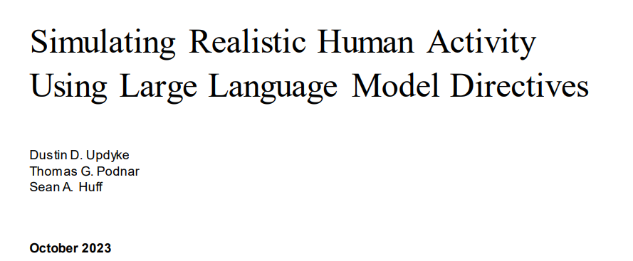 本报告探讨了 GHOSTS 框架的非玩家角色(NPC)客户端生成的活动(包括软件使用)与 GHOSTS 的默认行为和大型语言模型(LLM)生成的活动之间的比较。还探讨了基本结果在复杂性和情感方面的比较。在研究中,利用了生成式人工智能(AI)系统的高级自然语言处理能力,特别是 LLMs(即 OpenAI 的 GPT-3.5 Turbo 和 GPT-4)来指导 GHOSTS 框架中的虚拟智能体(即 NPC),GHOSTS 框架是一种在计算机上模拟现实人类活动的工具。设计了一种配置,通过使用 LLM 使活动完全自动化,其中文本输出成为可执行的智能体指令。初步研究结果表明,LLM 可以生成指令,从而在模拟环境中产生连贯、逼真的智能体行为。然而,某些任务的复杂性和指令到行动的转换带来了独特的挑战。这项研究对于提高模拟的逼真度和推动类人活动建模中的人工智能应用具有潜在的意义。建议开展进一步研究,以优化智能体对 LLM 指令的理解和响应。