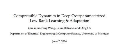 尽管机器学习模型中的过参数化在优化和泛化方面带来了极大的好处,但随着模型规模的增长,也导致了计算需求的增加。在这项工作中,我们展示了通过利用数据和模型参数内在的低维结构和可压缩动力学,我们可以在不增加计算负担的情况下享受过参数化的好处。在实践中,我们证明了这种方法在深度低秩矩阵补全以及微调语言模型方面的有效性。我们的方法基于深度过参数化低秩矩阵恢复的理论发现,我们证明了每个权重矩阵的学习动力学被限制在一个不变的低维子空间中。因此,我们可以构建和训练紧凑的高度压缩的分解,同时具有与其过参数化对应物相同的优势。在深度矩阵补全的背景下,我们的技术在保持过参数化优势的同时,大大提高了训练效率。对于语言模型的微调,我们提出了一种称为“Deep LoRA”的方法,这种方法改进了现有的低秩适应(LoRA)技术,减少了过拟合并简化了超参数设置,同时保持了相当的效率。我们在自然语言任务中验证了Deep LoRA的有效性,特别是在有限数据下进行微调时。