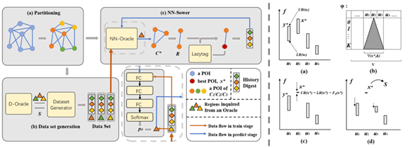 给定城市中一系列的地点,广告主应该在哪些地点投放户外广告,使得在不超过预算的情况下触达尽可能多的人?为了解决这个问题,过去的研究主要基于“用户是否被某广告影响取决于一个预定义的用户轨迹集合”。然而,在大多数的现实应用场景中,预定义的用户轨迹集合是很难被获取的;但是通过统计人群行为数据而计算出来的不同地点之间的人群转移概率图,则通常比较容易获取。本文解决了一个基于下述设定的一个一般性问题:给定人群在地点间的分布和人群在地点与地点间的转移概率图,在预算内选择若干个地点组成的集合,使得人群到达这些地点的期望次数最大化。百度研究团队将这个问题叫做空间用户影响力最大化问题(Geodemographic Influence Maximization,简称GIM)。 论文首先证明GIM是NP-hard的问题,但其目标函数是单调并且子模的,因此存在一个贪心策略的算法可以使效果达到理论最优解的1/2(1-1/e) 比例。然而,这个贪心算法的时间复杂度仍然太高,限制了它在大规模数据上的可用性。论文利用GIM问题的转移图上的空间临近性等特点,提出了一个比贪心算法更加快速有效的确定性算法(称作Lazy-Sower)。同时,本文进一步提出了一个基于机器学习的随机算法(NN-Sower)。NN-Sower在轻微减少效果的条件下可以大幅提高计算速度。在两个城市的真实数据集上的实验证明了新算法比基准算法具有更好的效果和速度。