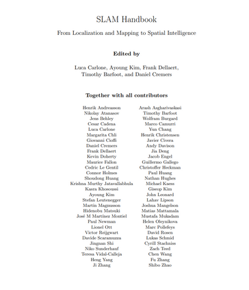 本章介绍了同步定位与建图(SLAM)问题,展示了构成典型SLAM系统的模块,并解释了SLAM在自主系统架构中的作用。本章还对该主题提供了简短的历史回顾,并讨论了传统SLAM概念如何随着新技术趋势和机遇的出现而不断发展。本章的最终目标是引入基本术语和动机,并描述本手册的范围和结构。