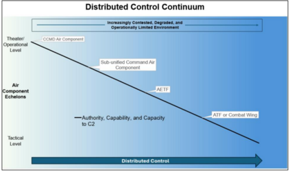 AFDP 3-0.1 通过这一模式介绍 C2,形成了任务指挥行动的完整图景。它通过解决 “什么是分布式控制、向谁分布式控制、为了什么目的分布式控制 ”这一问题,加深了对分布式控制的理解。其答案是 1)权力,2)下级指挥官,3)进行 C2 流程。这种不断发展的 C2 方法适用于美国空军各指挥层级的所有行动。