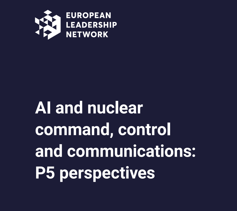 欧洲领导力网络(ELN)开展的题为"研究人工智能对战略稳定的影响:欧洲和五核国的观点"。在美国国务院军控、核查与合规局的支持下,该项目确定了核武器国家如何在其 NC3 系统中使用和寻求使用人工智能技术,并探讨了这种整合的反响。