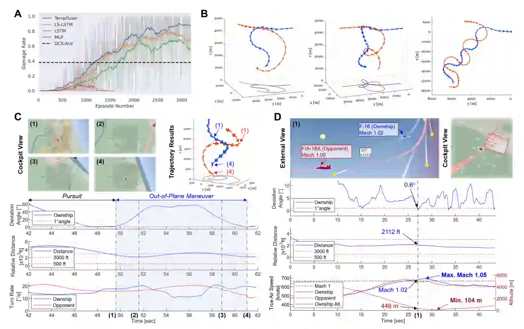 我们用各种对手飞机(如 F-15E、F-16、F/A-18A 和 Su-27)对我们的网络进行了广泛的训练和验证。结果表明,TempFuser 能够以端到端的方式学习具有挑战性的飞行动作,并在性能上优于各种对手飞机,包括那些具有卓越规格的飞机。此外,它还在低空和 1 马赫以上的高速飞行场景中表现出强大的追击性能。