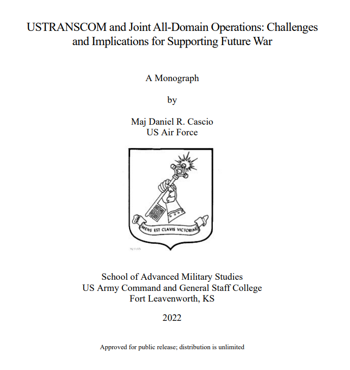 不断发展的联合全域作战(JADO)概念是美国未来战争方式的迷人发展,但其行动的性质和他们试图击败的威胁使人质疑美国运输司令部(USTRANSCOM)是否有适当的资源和组织来维持未来的行动。JADO遵循美国作战理论的历史进程,不断发展各部门和各领域之间更多的整合力量。然而,JADO超越了单纯的消除冲突、协调和整合。JADO寻求真正利用战争的时间性,为敌方部队同时产生多个问题,并具有实时态势感知能力,以识别并随后从一个领域产生效果,从而利用固有的不对称优势。战争领域之间的整合将比美军内部所见的更加紧密,而且行动的节奏将比目前的能力快得多。为了使JADO成为现实,必须进行技术投资并加以实现。除此之外,联合部队内的作战理论将不得不被改写,以反映在未来战斗中释放JADO潜力所必需的最佳实践。所有这些都相当于一个革命性的举措,专注于重塑美国的战争方式。所有领域的作战单位将不得不调整他们的操作方法,以保持在该框架内的功能,并提供系统所需的效果。尽管许多文献和讨论都围绕着作战部队将经历和必须适应的变化,但为确保作战部队得到后勤支持而依赖的维持力量却很少受到关注。
