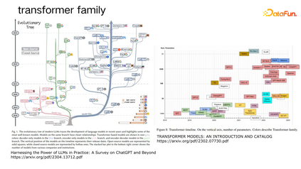 ****人工智能技术蓬勃发展,并于 2012 年开始加速。那一年,Hinton 及其指导的学生通过 AlexNet 网络在 2012 年 ImageNet 图像分类大赛中夺冠,标志着深度学习技术重新获得了广泛关注。自 2012 年至 2017 年间,有监督学习技术成为了主流,期间图像处理技术迅猛发展,然而自然语言处理领域却未能实现突破性进展。这个阶段在解决自然语言处理问题时,虽然采用了循环神经网络、长短期记忆网络等复杂的网络结构,但仍未能解决自然语言处理领域的核心问题,如长期依赖导致的梯度消失问题、处理效率无法并行化,以及依赖大量标注数据的监督学习模式使得数据获取成本高昂。正因如此,该时期自然语言处理领域并未实现显著的突破。然而,一切在 2017 年发生了转变,Google 发布了开创性的论文《Attention is All You Need》,首次提出了基于注意力机制的 Transformer 网络架构。这种架构完全舍弃了传统的循环和卷积网络结构,实现了模型的并行化处理和自监督学习,使得大量未标注数据得以有效利用。并行化处理降低了计算复杂度,加速了大规模计算任务的处理速度。Transformer 网络的提出促进了大规模预训练模型的兴起,标志性地将我们的研究方向分为三个主要类别:基于 Transformer 的 Encoder-Decoder 结构,分别形成了 Encoder 类、Decoder 类以及 Encoder-Decoder 的预训练模型。例如,2018 年提出的 BERT 模型,属于 Encoder 类,能够执行阅读理解等任务,通过上下文推断含义;而 GPT 系列模型,作为 Decoder 类,侧重于根据前文预测后文;Encoder-Decoder 模型则在如机器翻译等任务中表现出色。这些创新大大推动了自然语言处理技术的发展。从下图中可以看到基于 Transformer 架构衍生出的各类大型模型。左侧图展示了三个主要分支:红色代表仅包含编码器(encode only)的模型,中间部分包含编码器和解码器(encode-decode)的模型,而右侧则聚焦于仅含解码器(decode only)的模型。右侧的图则依据模型的规模进行分类。我们可以观察到,自 Transformer 诞生后,随着 GPT-1 的推出,模型规模开始逐渐增大。随后,BERT 的问世以及 GPT 系列的持续发展,在 Transformer 架构的基础上不断演进,展现了模型规模的快速增长趋势。