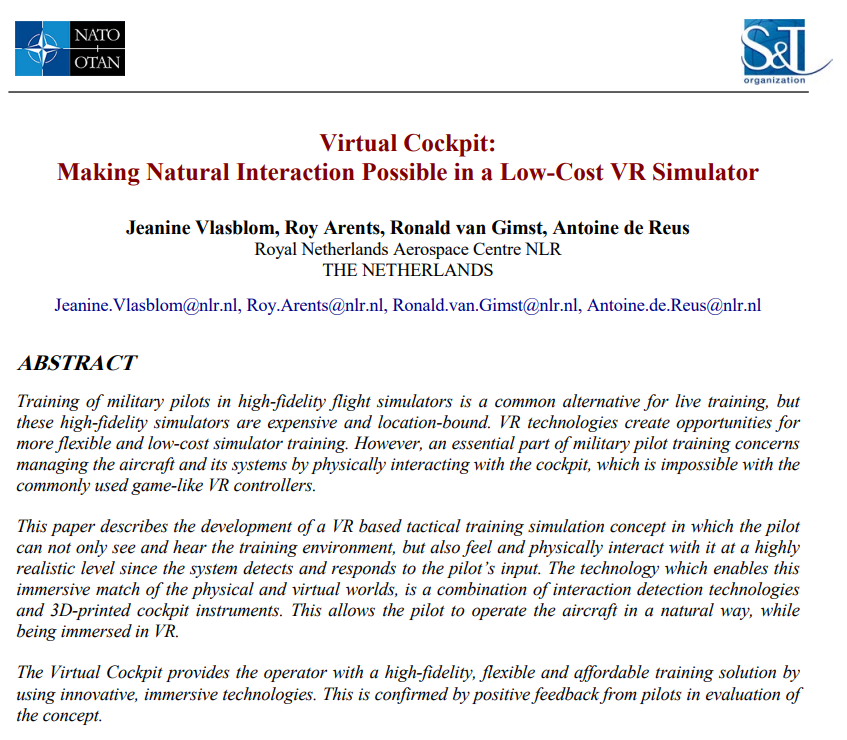 虚拟驾驶舱通过使用创新的沉浸式技术为操作员提供高保真、灵活且经济实惠的培训解决方案。飞行员在评估概念时的积极反馈证实了这一点。