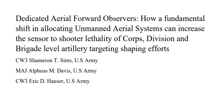随着大规模作战行动(LSCO)的决定性作战训练环境(DATE)场景变得更加复杂,敌对势力(OPFOR)继续变得更加适应猎杀和瞄准蓝军指挥所和关键资产,如整个战斗空间的炮兵设备和反火力(CF)雷达。理解这一点至关重要,因为虽然美军高度重视使用无人机系统(UAS)进行信息、监视和侦察(ISR),以确定敌人在时间和空间上可能有高收益目标(HPTs)的位置,但OPFOR可以利用这一点并取得成功,因为一个简单的事实:美军使用红方UAS进行狩猎,而且他们擅长于此。OPFOR不需要像美军那样使用红方UAS进行大量的信息收集(IC),因为OPFOR明白,蓝军的火炮和雷达在大范围内的移动足迹不多,因此,一旦他们找到HPT,他们可以很容易地使用红方UAS与特种部队(SPF)配合,用远程精确火炮猎杀、瞄准和攻击蓝军的关键资产。如果师炮兵(DIVARTY)、军团野战炮兵旅(FAB)和旅级直接支援(DS)营都有自己的目标定位UAS分队,那会怎样?这将缩短从传感器到射手的杀伤链,减少目标逃脱概率,减少目标反应时间,减少动态重新分配给各师和军团情报优先事项的ISR资产需要,提高猎杀、瞄准和塑造敌人炮兵纵深的有效性,同时不干扰他们各自S2/G2参谋部的IC工作。美国陆军在如何分配无人机方面的这一革命性和根本性的转变能否为拥有和主导狩猎提供解决方案,以对抗一个近乎对等的OPFOR对手,后者相信通过火炮和综合防空可战胜对手赢得战斗?
